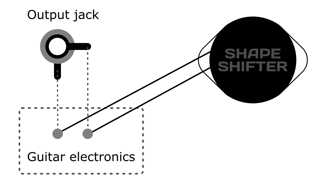 The Shape Shifter Switch must be connected in parallel with the guitar's output. There are two ways to achieve this: